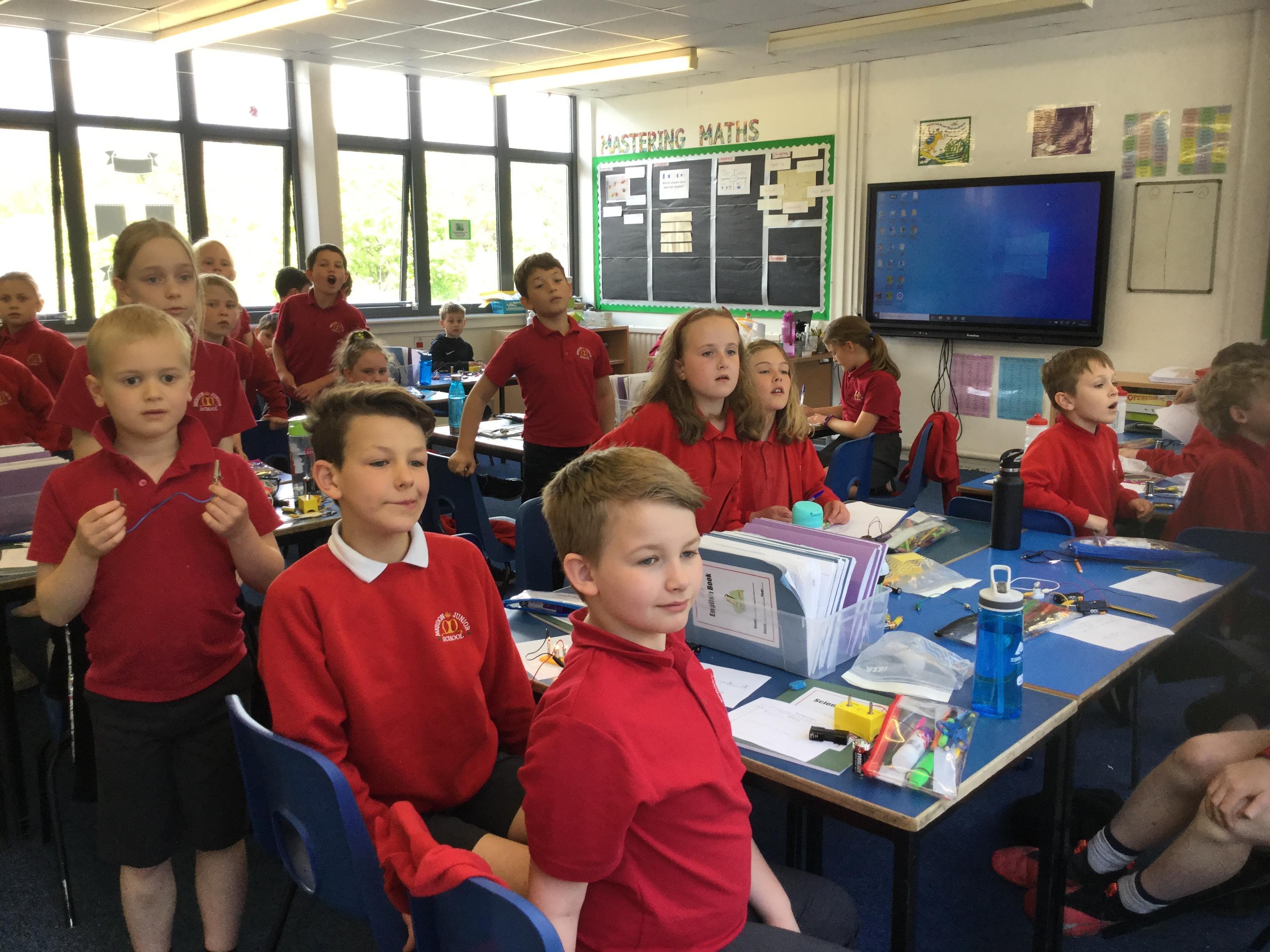 During our science day about electricity we also learnt about the Water Cycle. In the afternoon the children noticed the roof was 'steaming'! We talked about how the steam was being made and it's part in the water cycle.