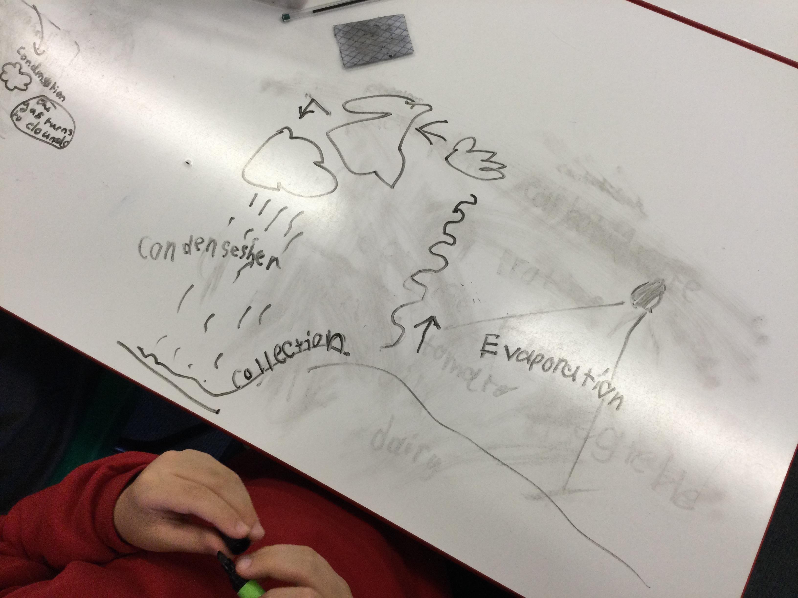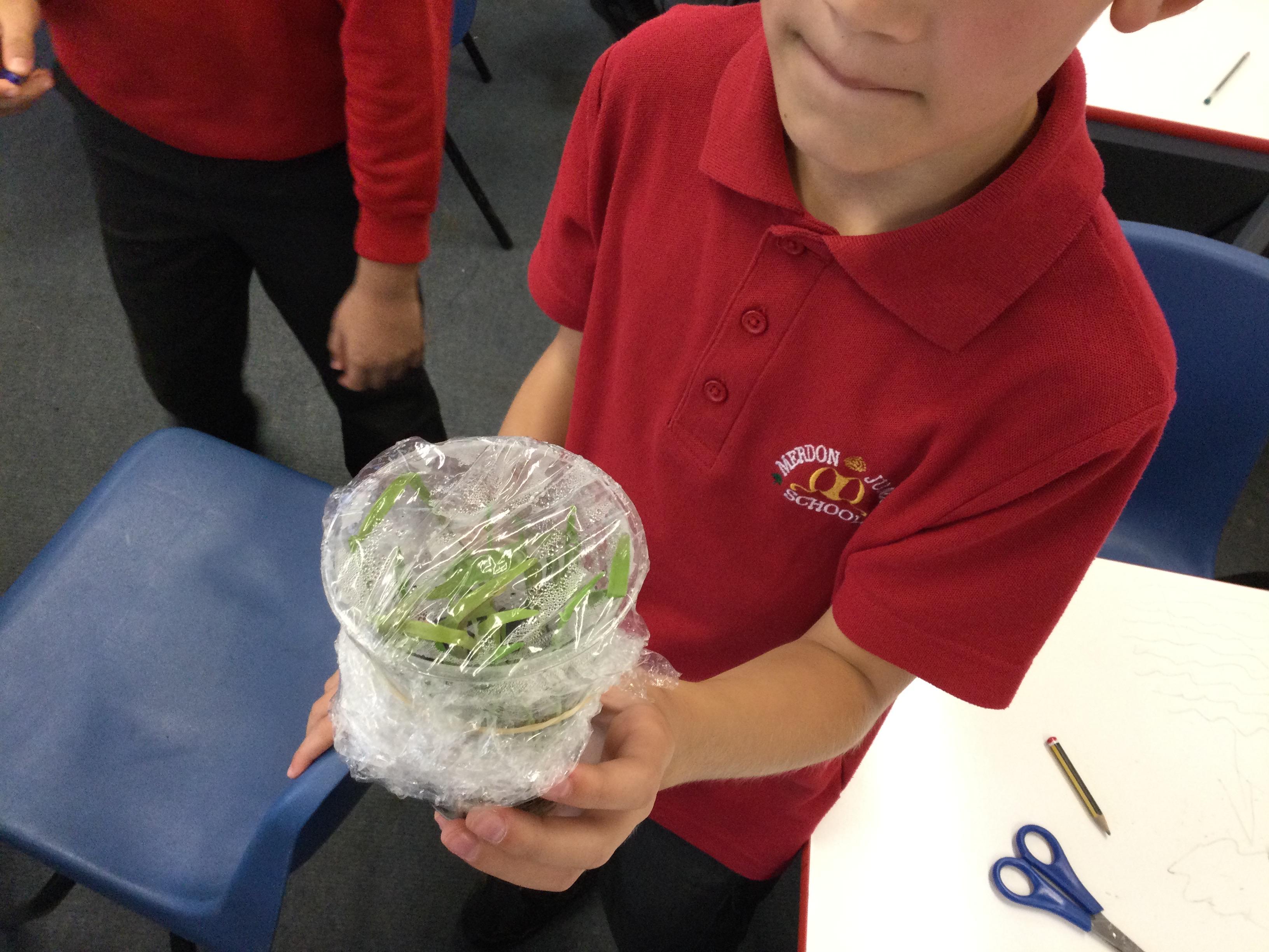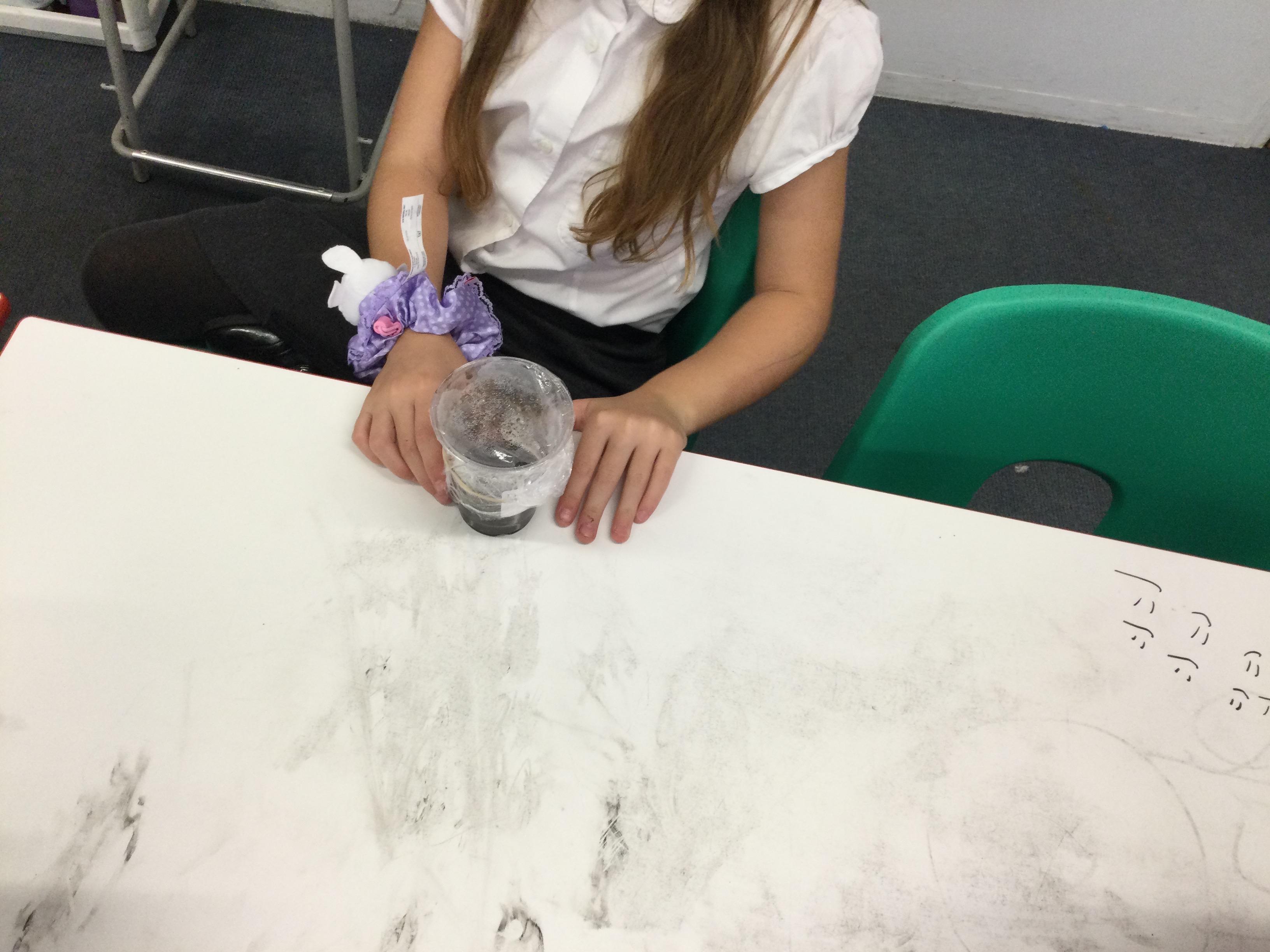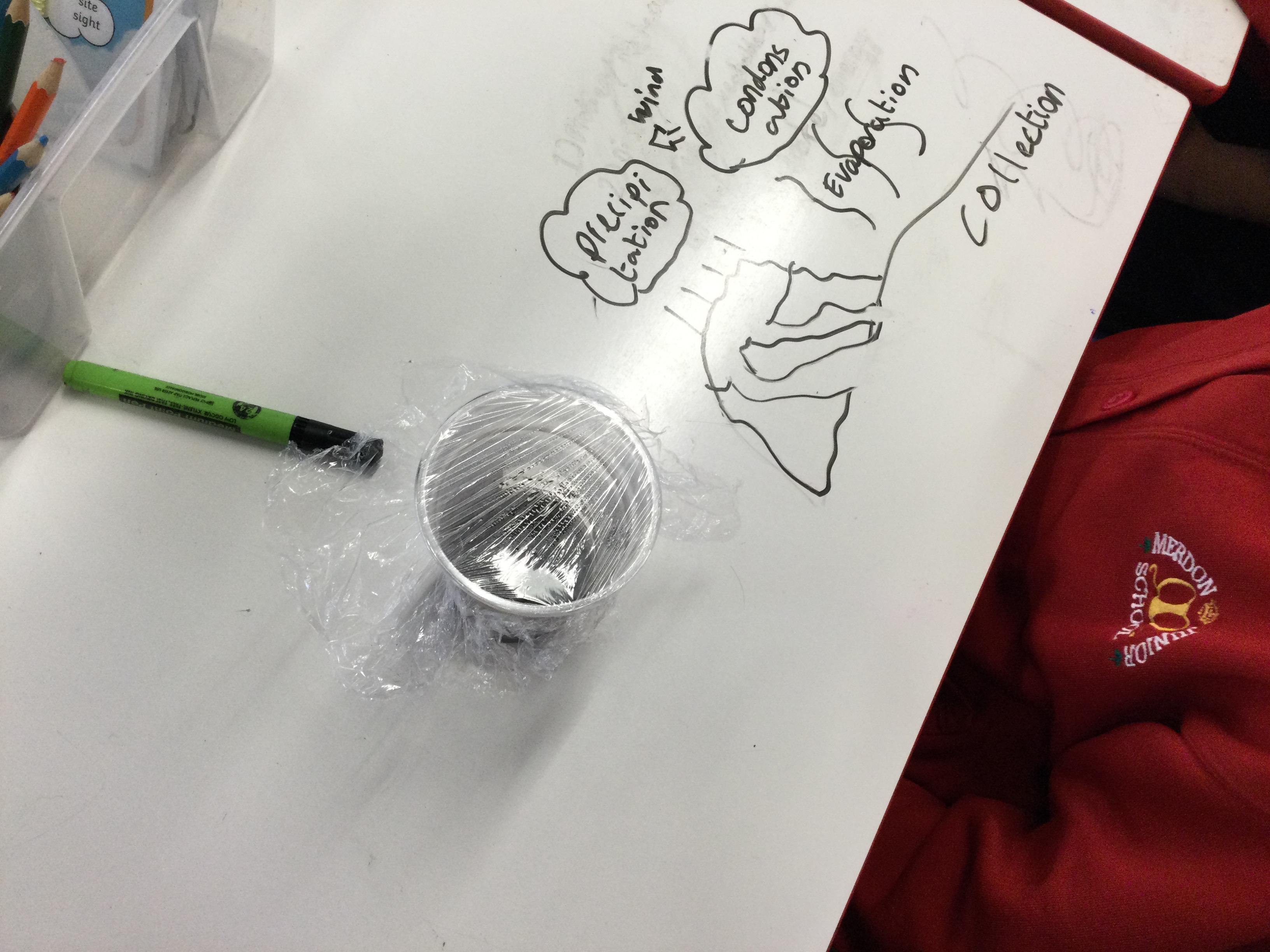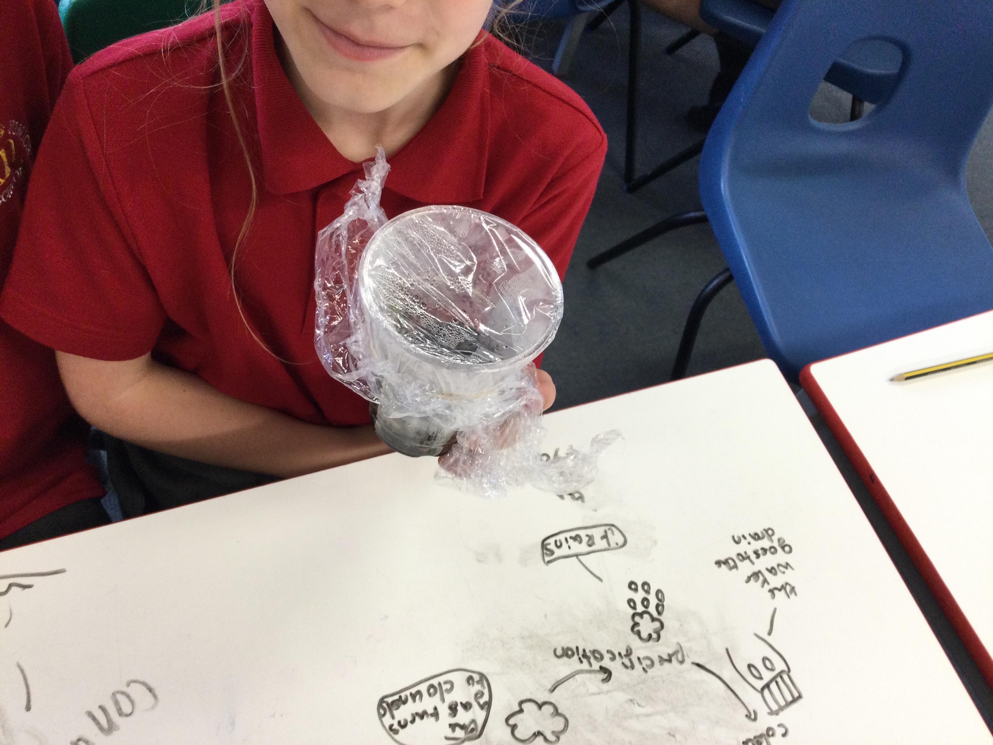 In Science we looked at the water cycle and the part evaporation and condensation play in it. We then created our own water cycle, we have placed it in a sunny spot and are observing to see what happens.
