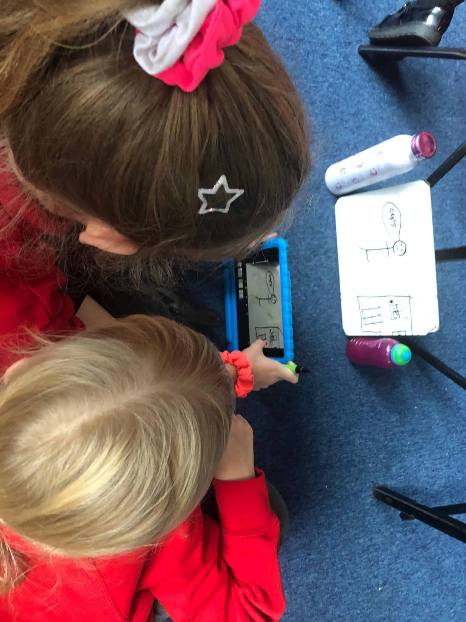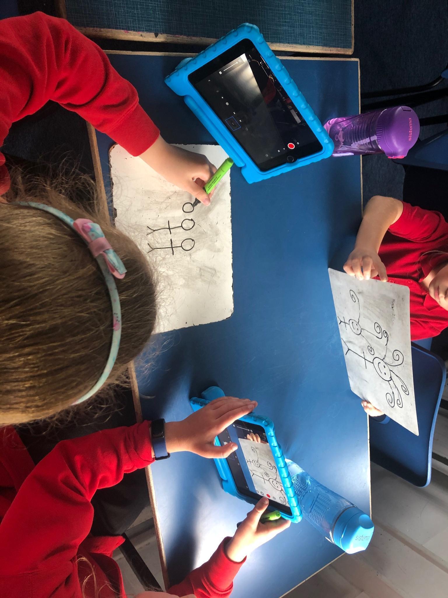 In computing we learnt about animation and how it is made by taking a sequence of pictures. Today we made some of our own animations using iPads, whiteboards and whiteboard pens.