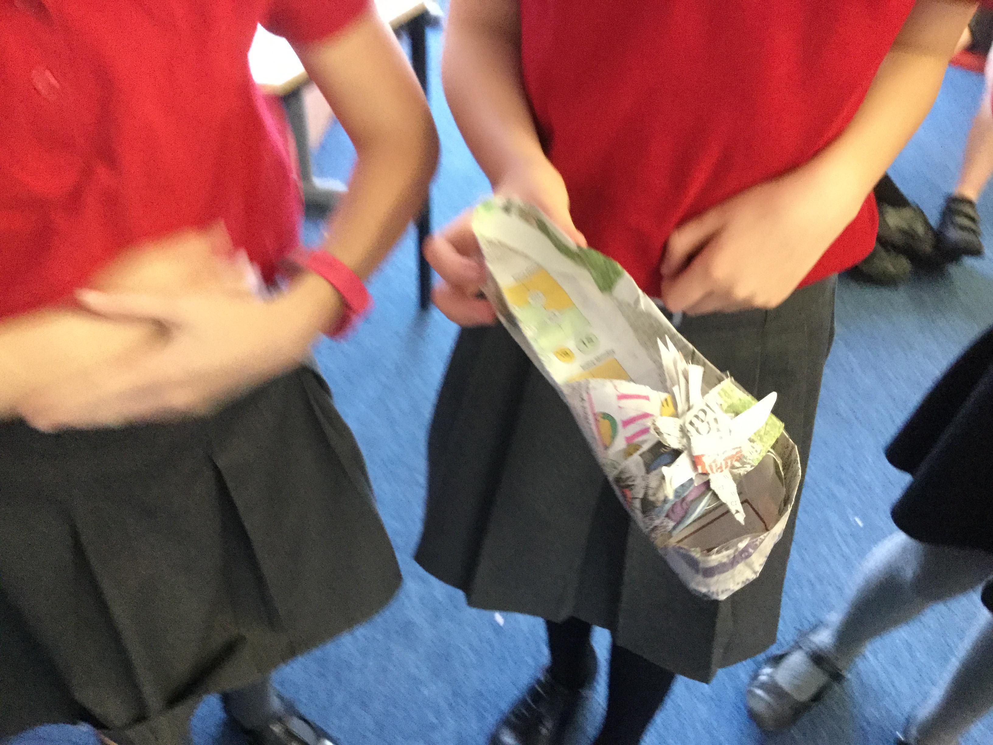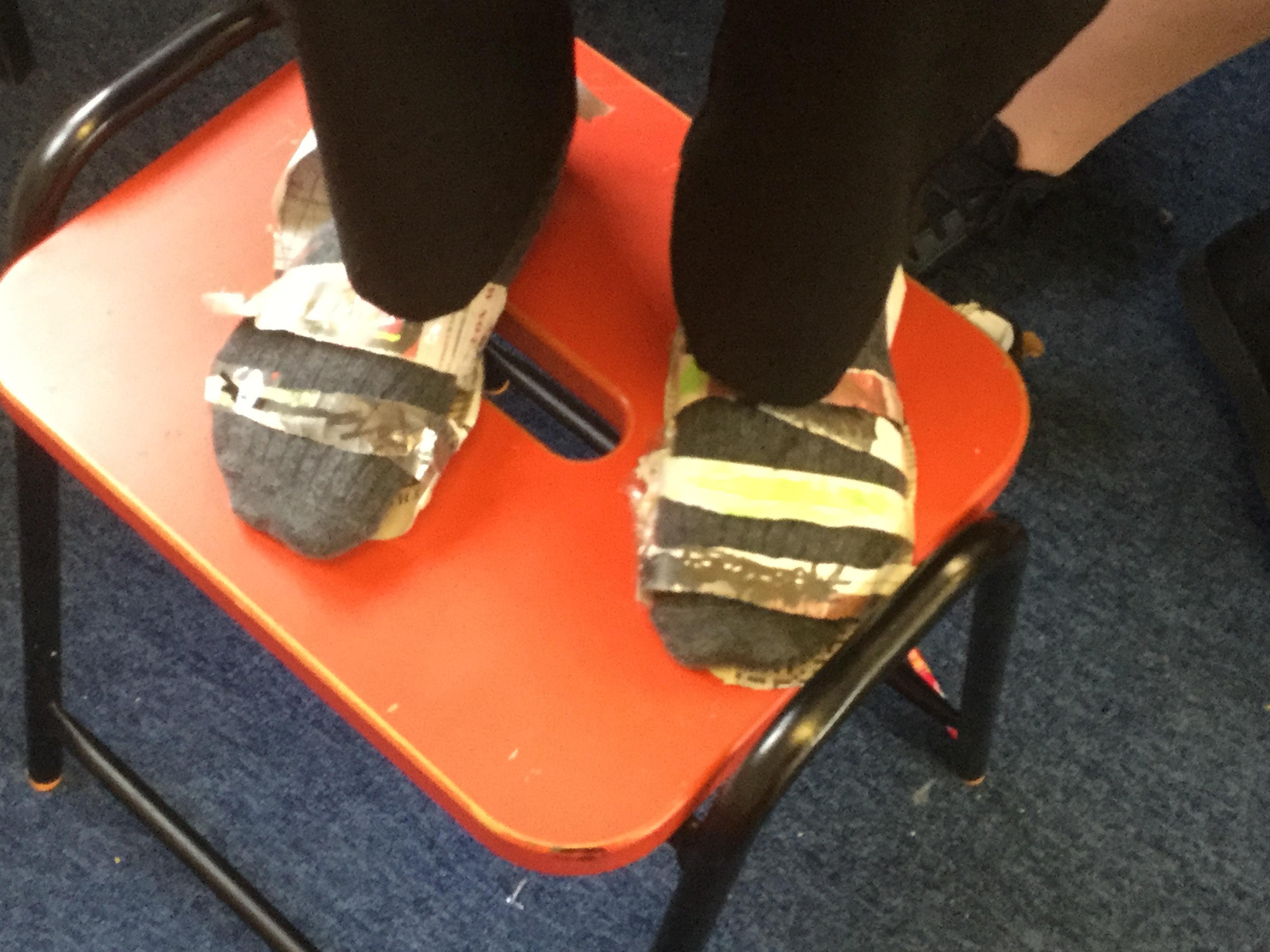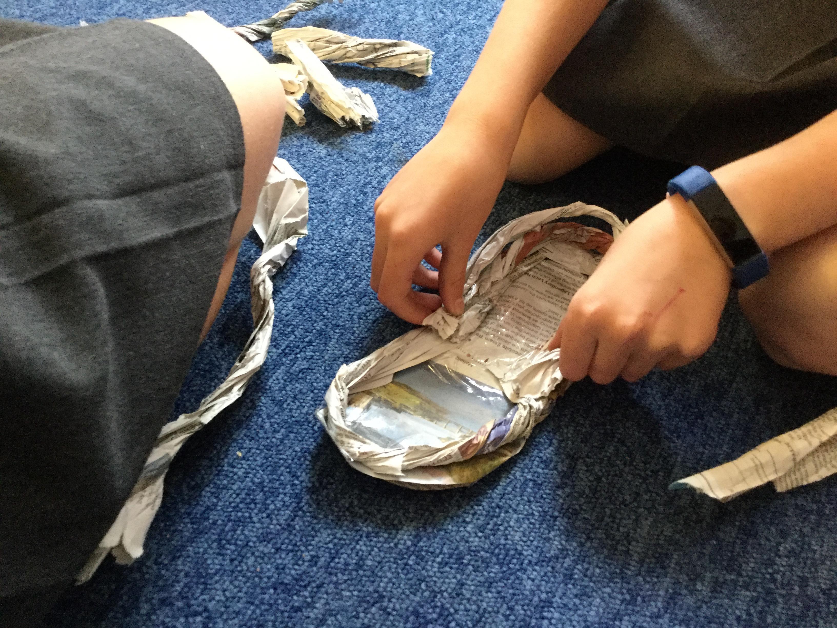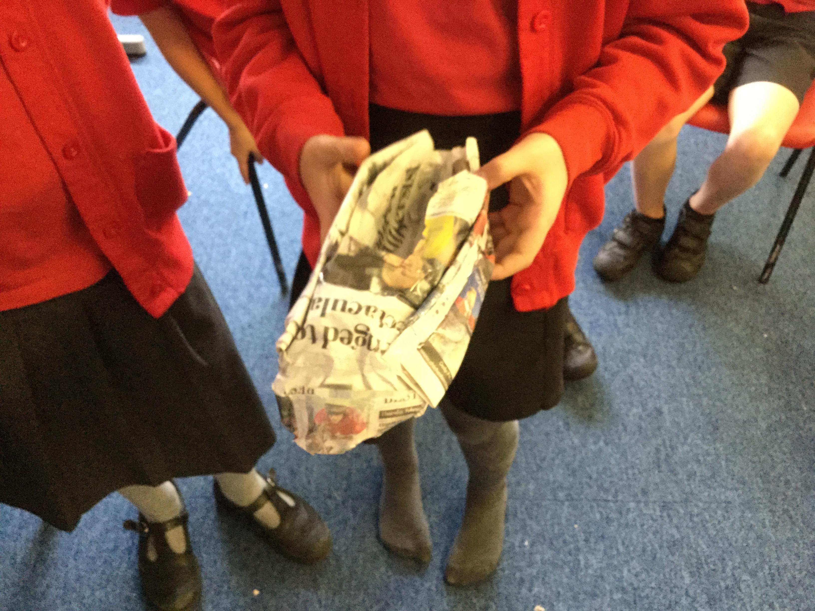 Today we carried out research into what the Vikings used to wear. The children then went into groups and designed a Viking shoe, knowing that the only resources they would have would be newspaper and sellotape!