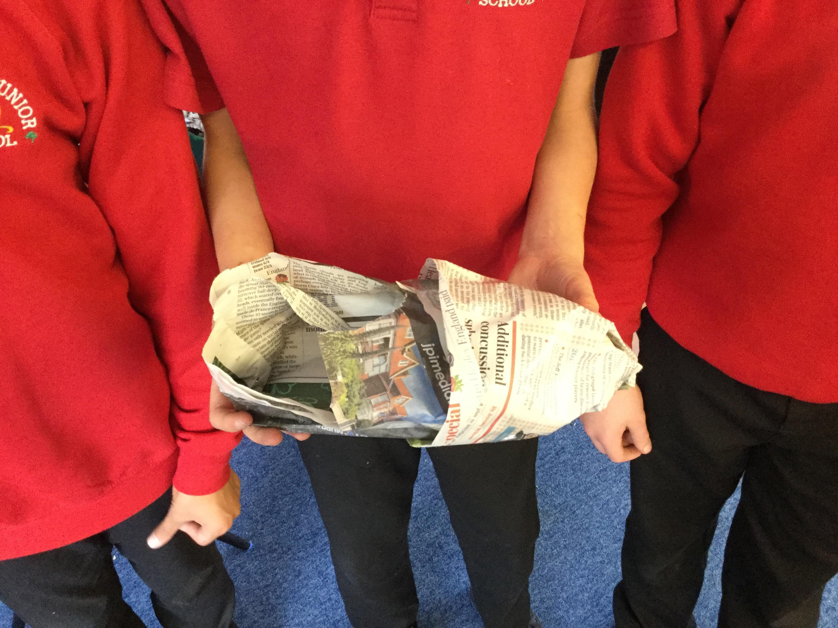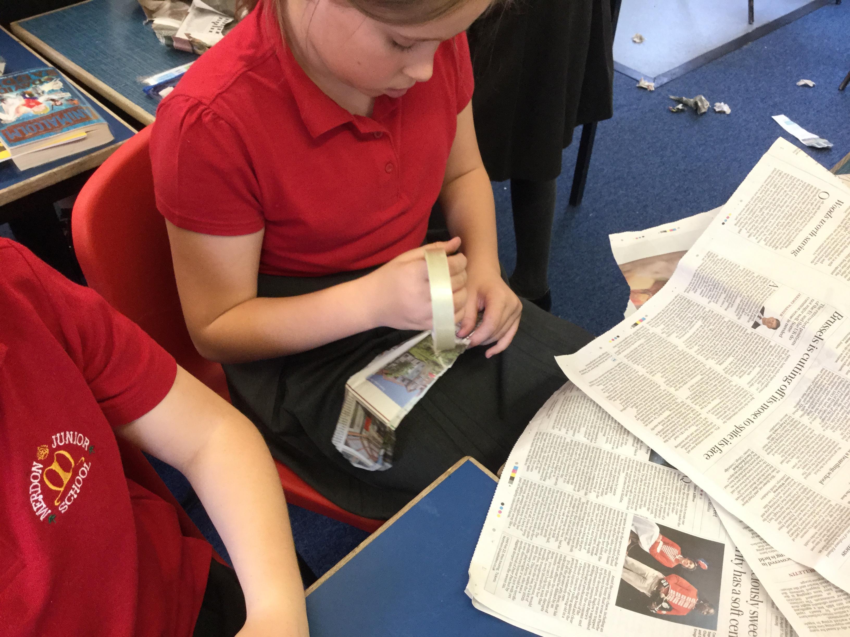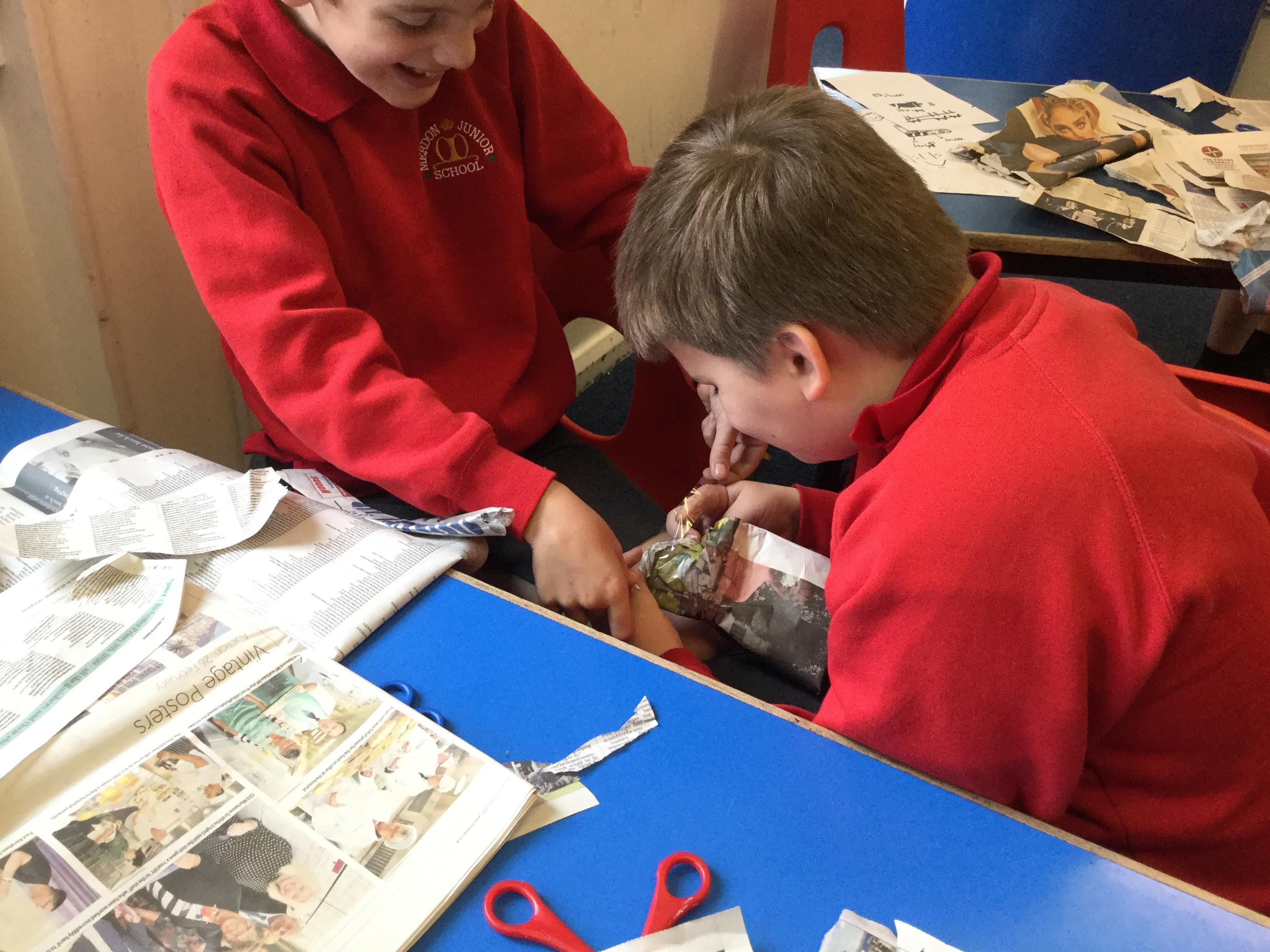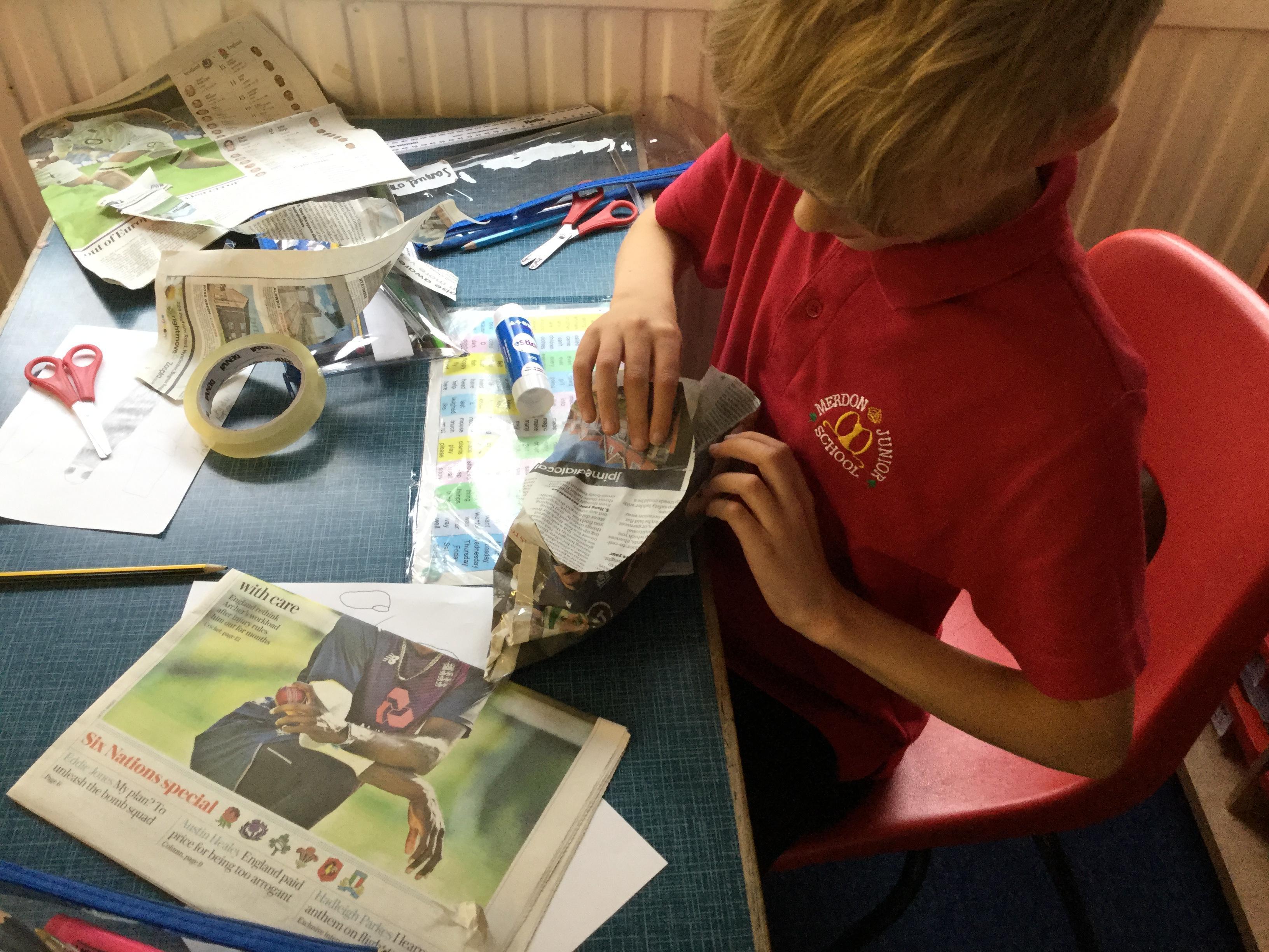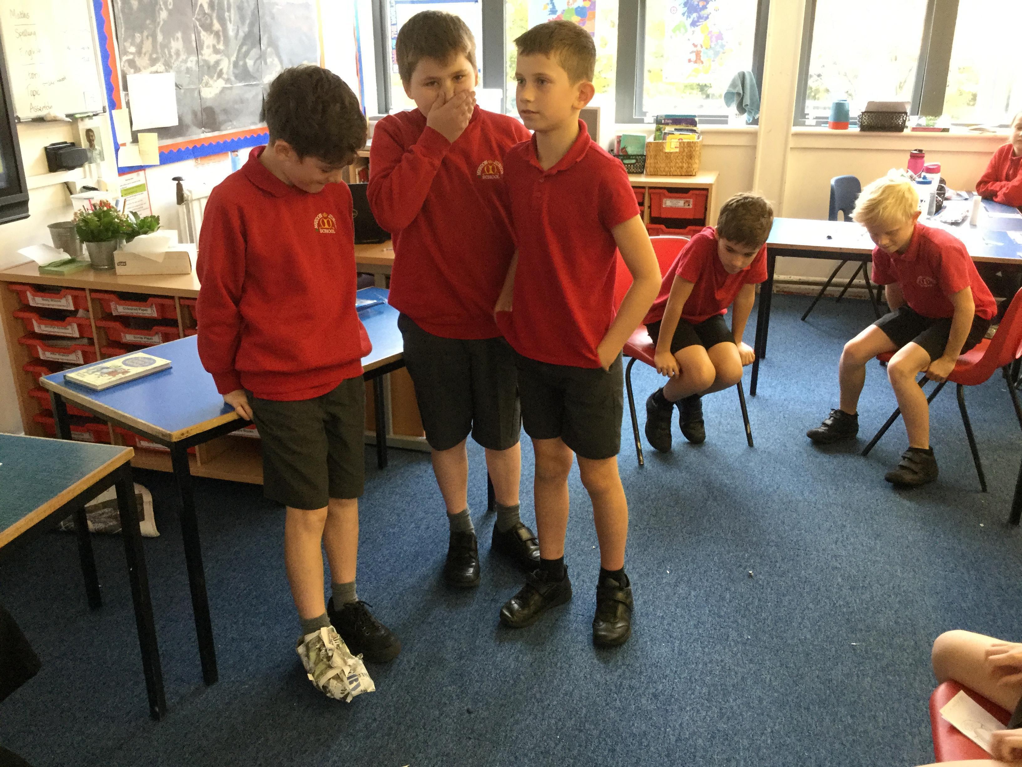 Today we carried out research into what the Vikings used to wear. The children then went into groups and designed a Viking shoe, knowing that the only resources they would have would be newspaper and sellotape!