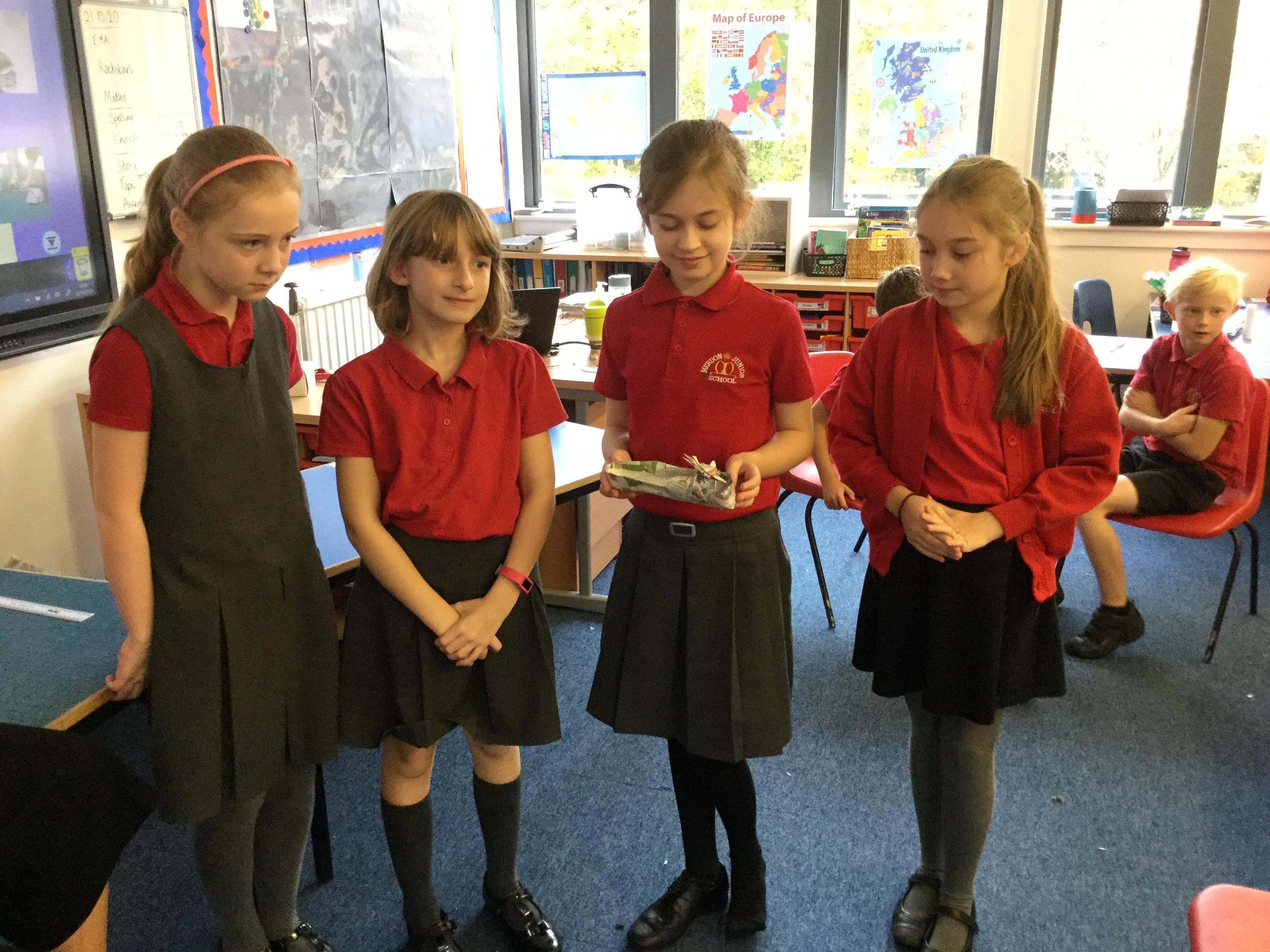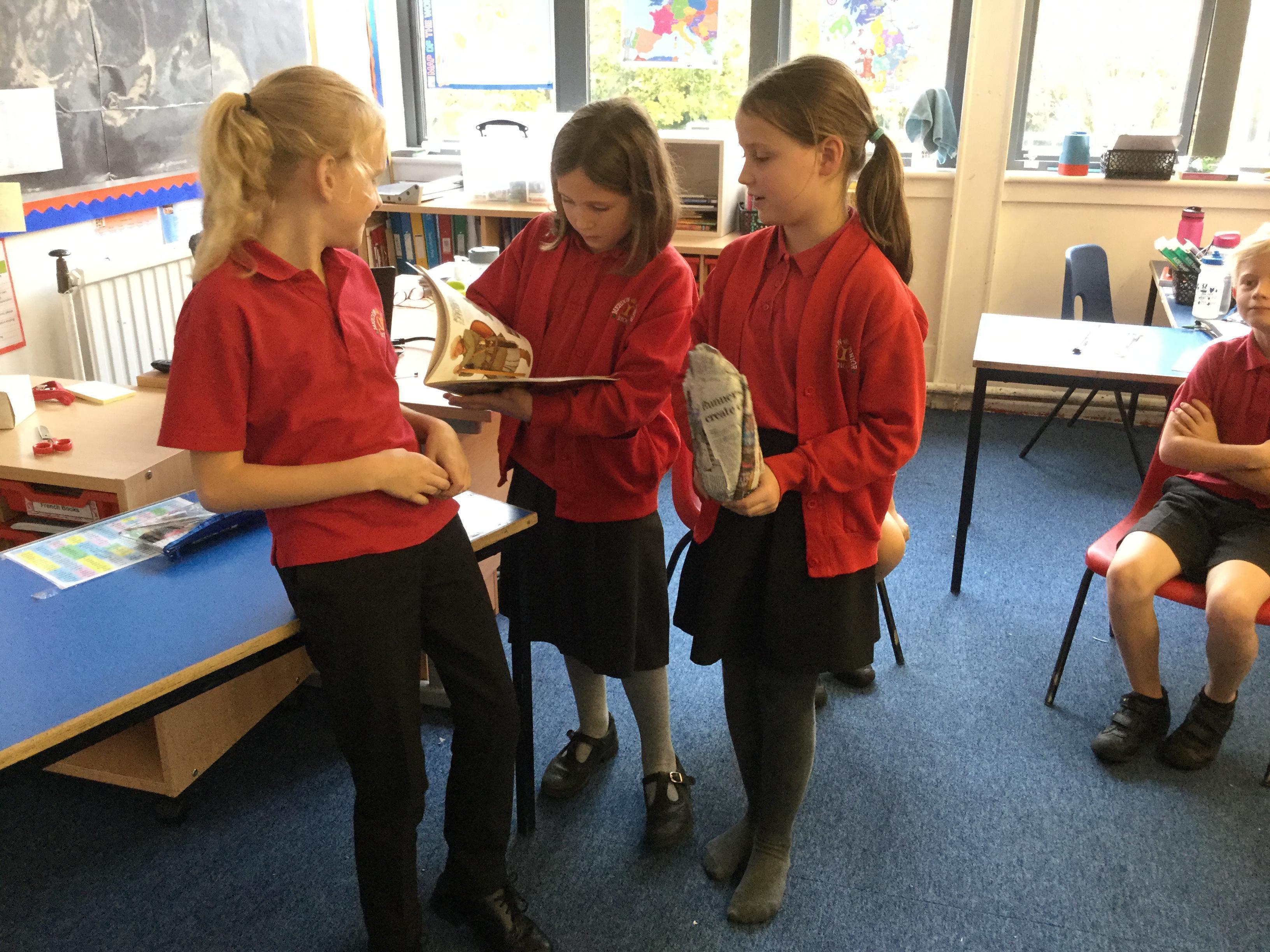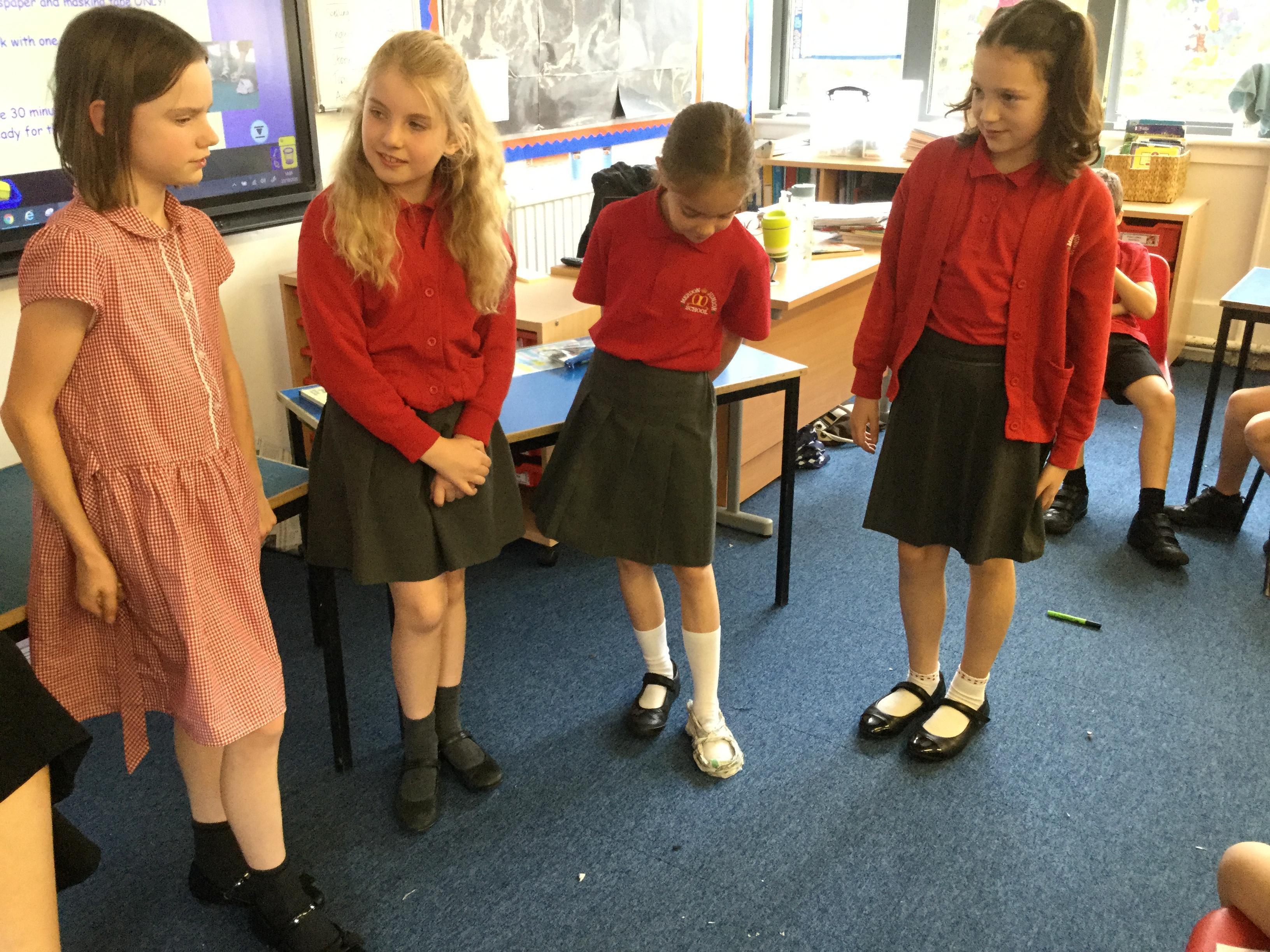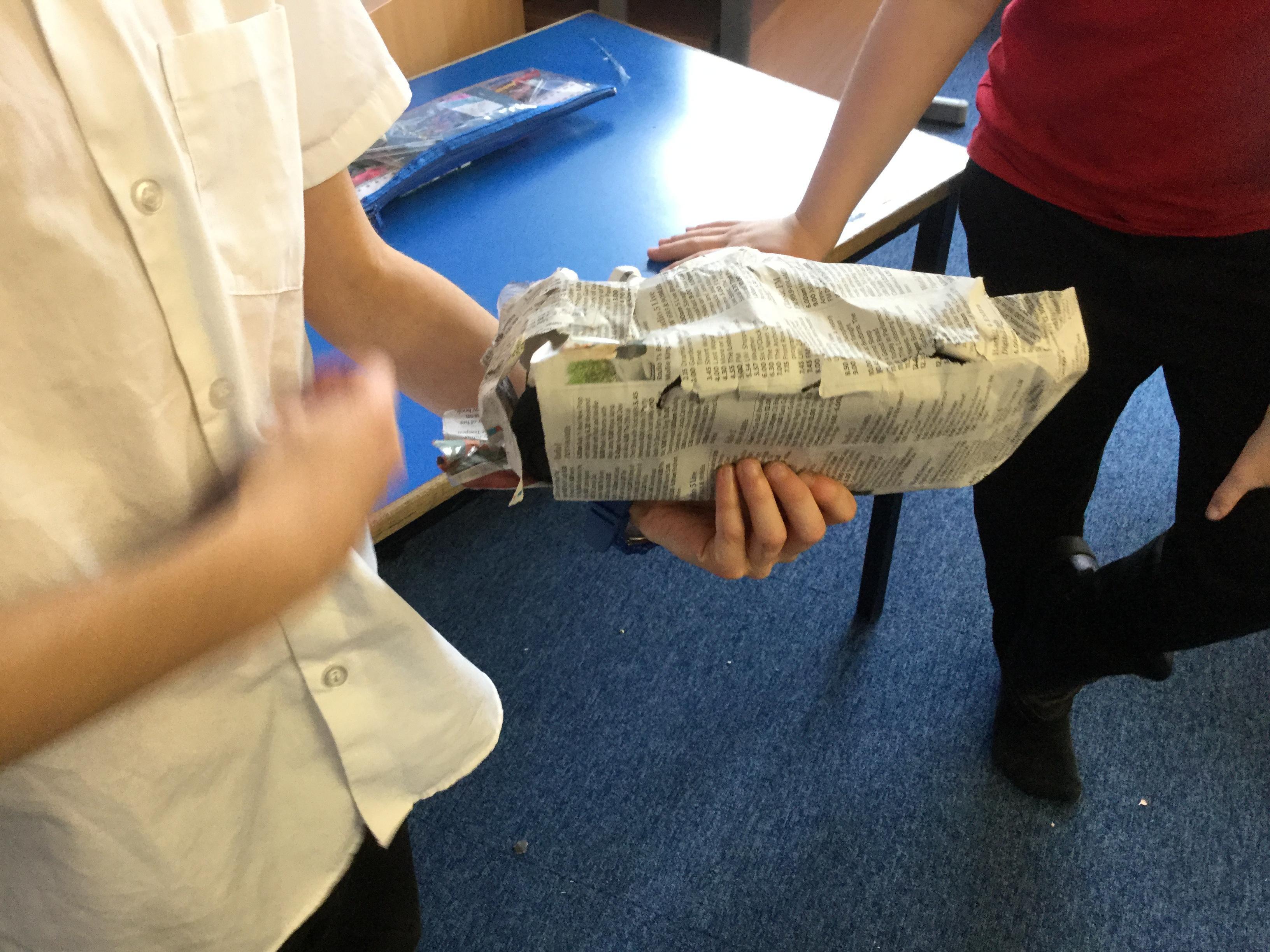 Today we carried out research into what the Vikings used to wear. The children then went into groups and designed a Viking shoe, knowing that the only resources they would have would be newspaper and sellotape!
