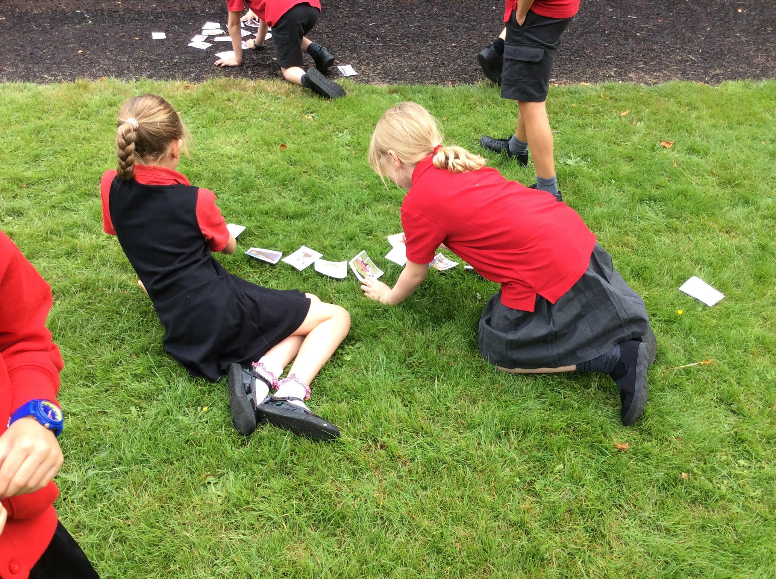 We had our learning outside today to search for pictures hidden in the school grounds.  We sorted the pictures into groups; looking for things that were the same and different.