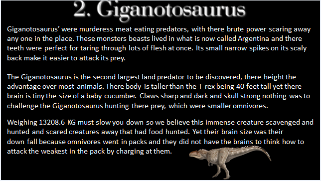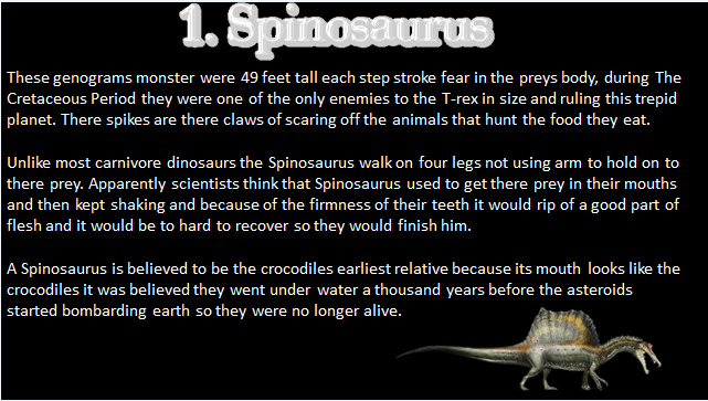 Above me flying high in the sky was a Pterosaurs a huge bird-like animal with a long beak and tremendously long wings, but weirdly with no feathers. This creature was probably one of the strangest animals I saw that day. You’re probably thinking he is probably the size of an eagle. NO, this animal was the size of a school bus!!! That’s one big bird.