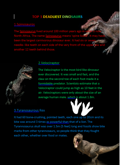 It was deadly looking but luckily, well I hoped, it was not after me, it was after vegetation and he would use his horns for protecting himself. It was about two metres tall but much longer in width with its huge horns. My body trembled it was really amazing seeing one but not that amazing knowing that it could kill me. So I knew I had to keep my distance from the triceratops. It was incredible though, an amazing face which kind of looked like a parrot! I had never believed that until I got an actual close up of it with its mouth that looked like an extra large parrot beak.