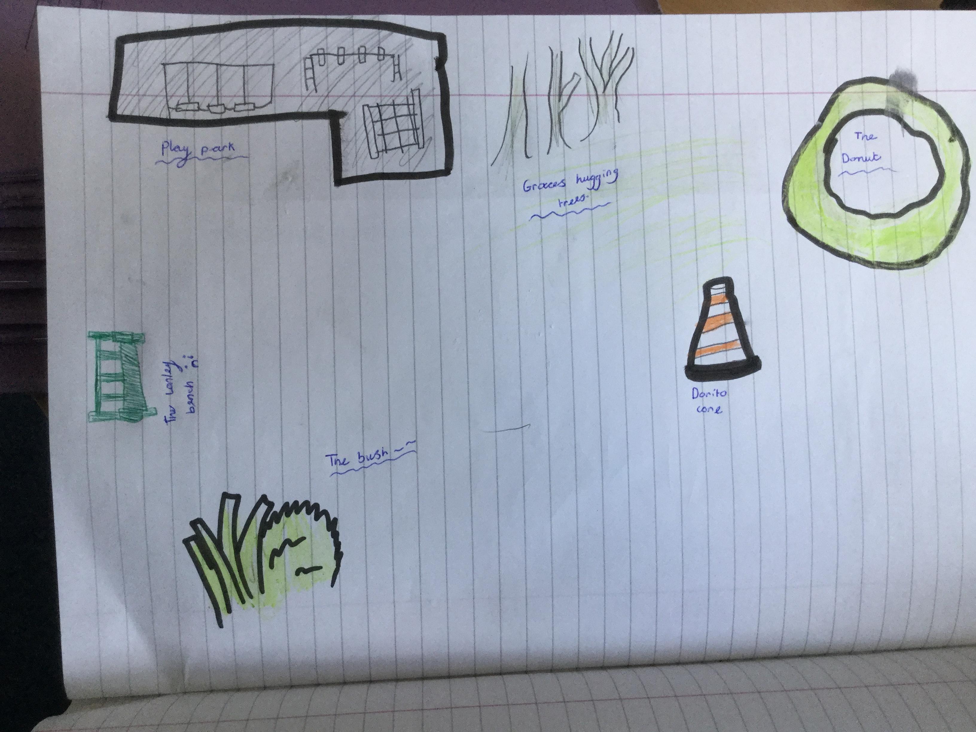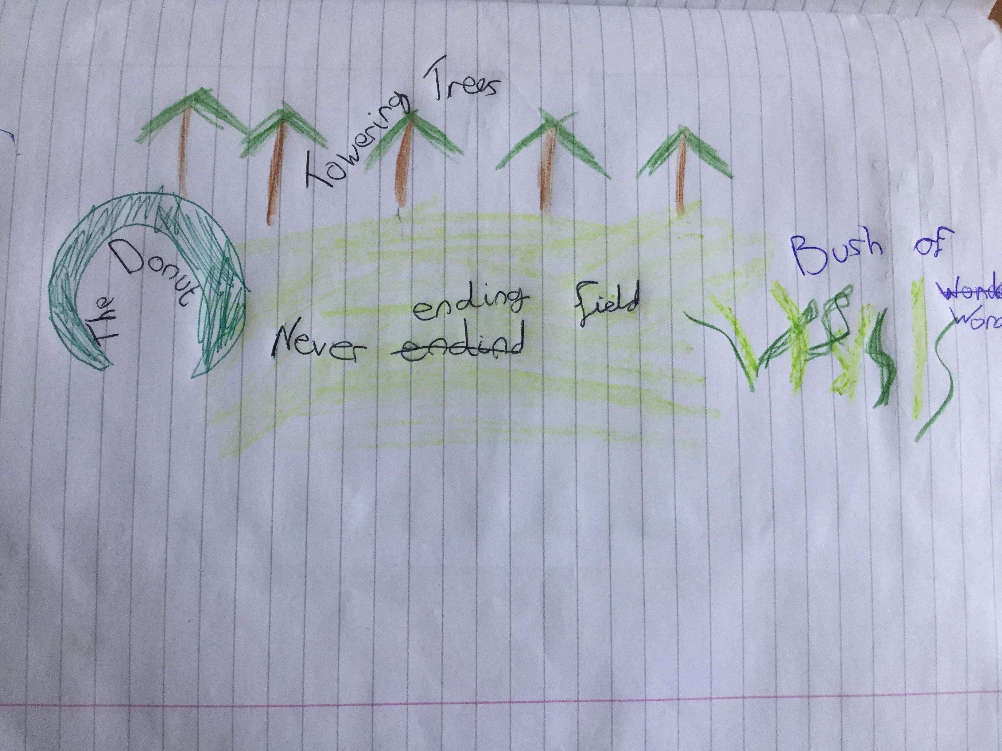 Our first session was ‘Place: taking notice.’ The children explored their everyday wonderland, the school grounds, and gave unique names to areas of interest to them.