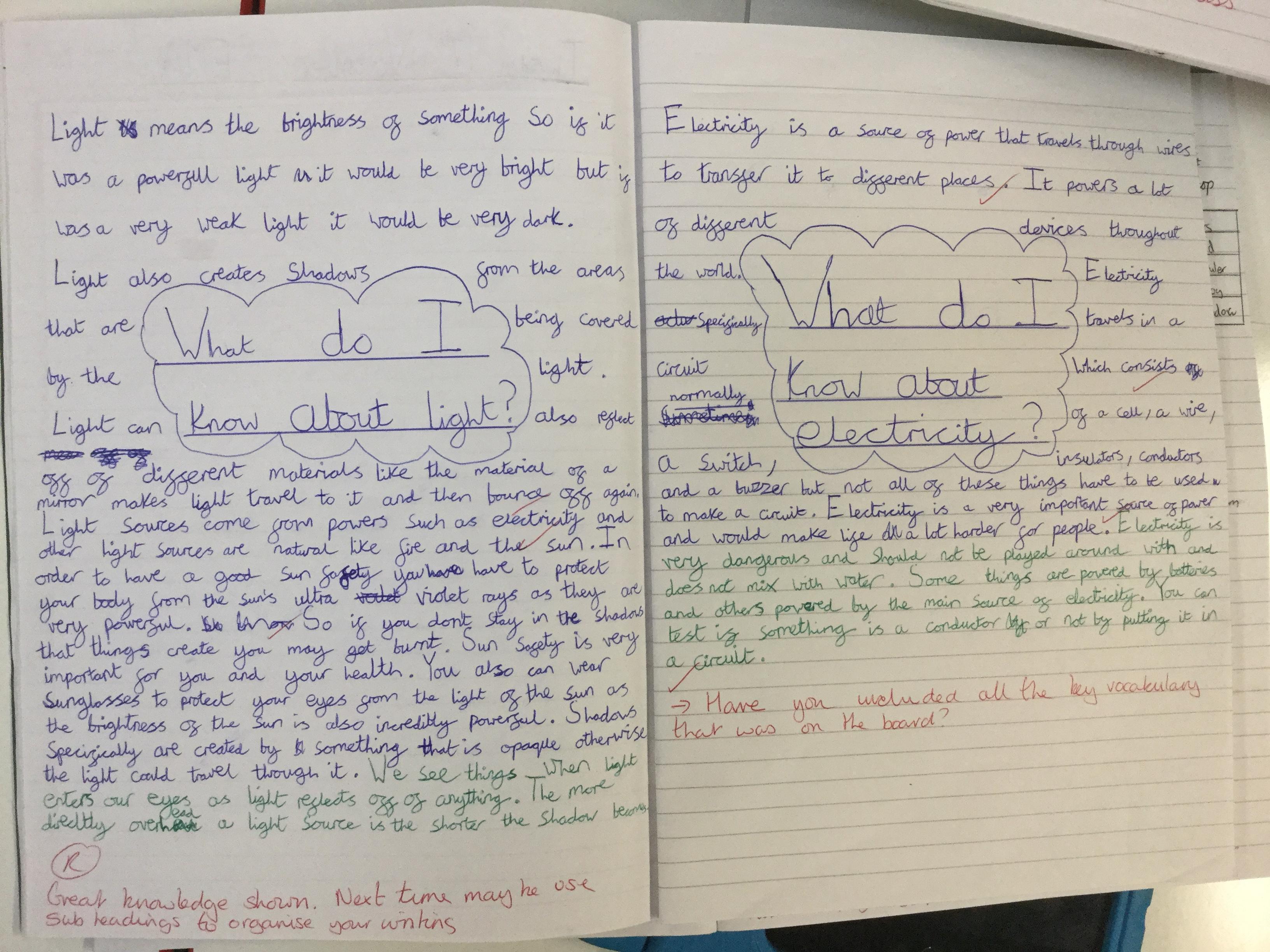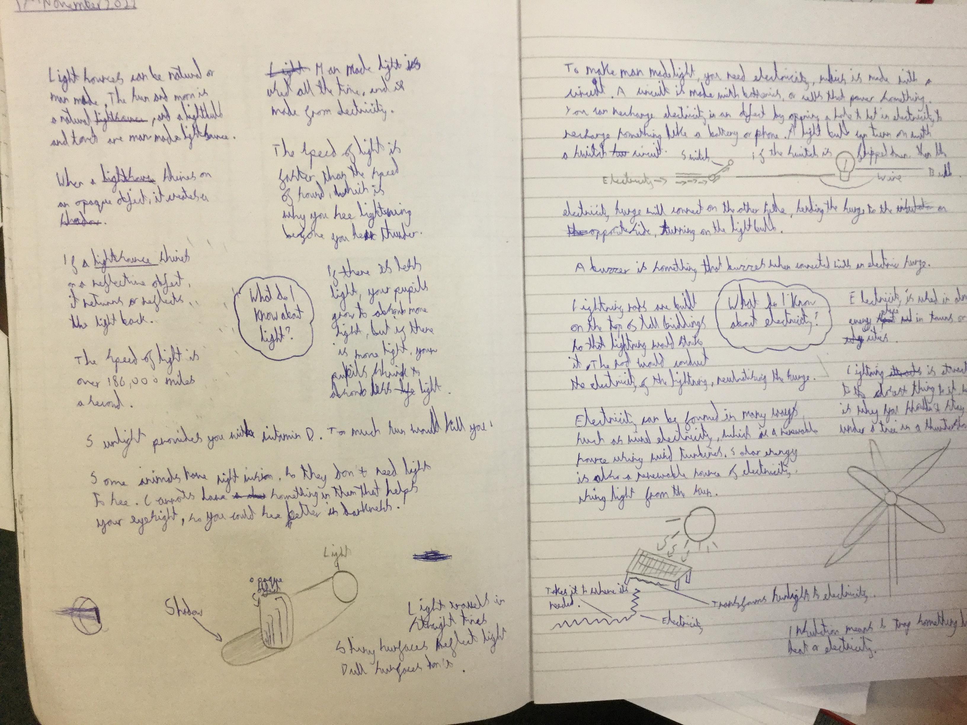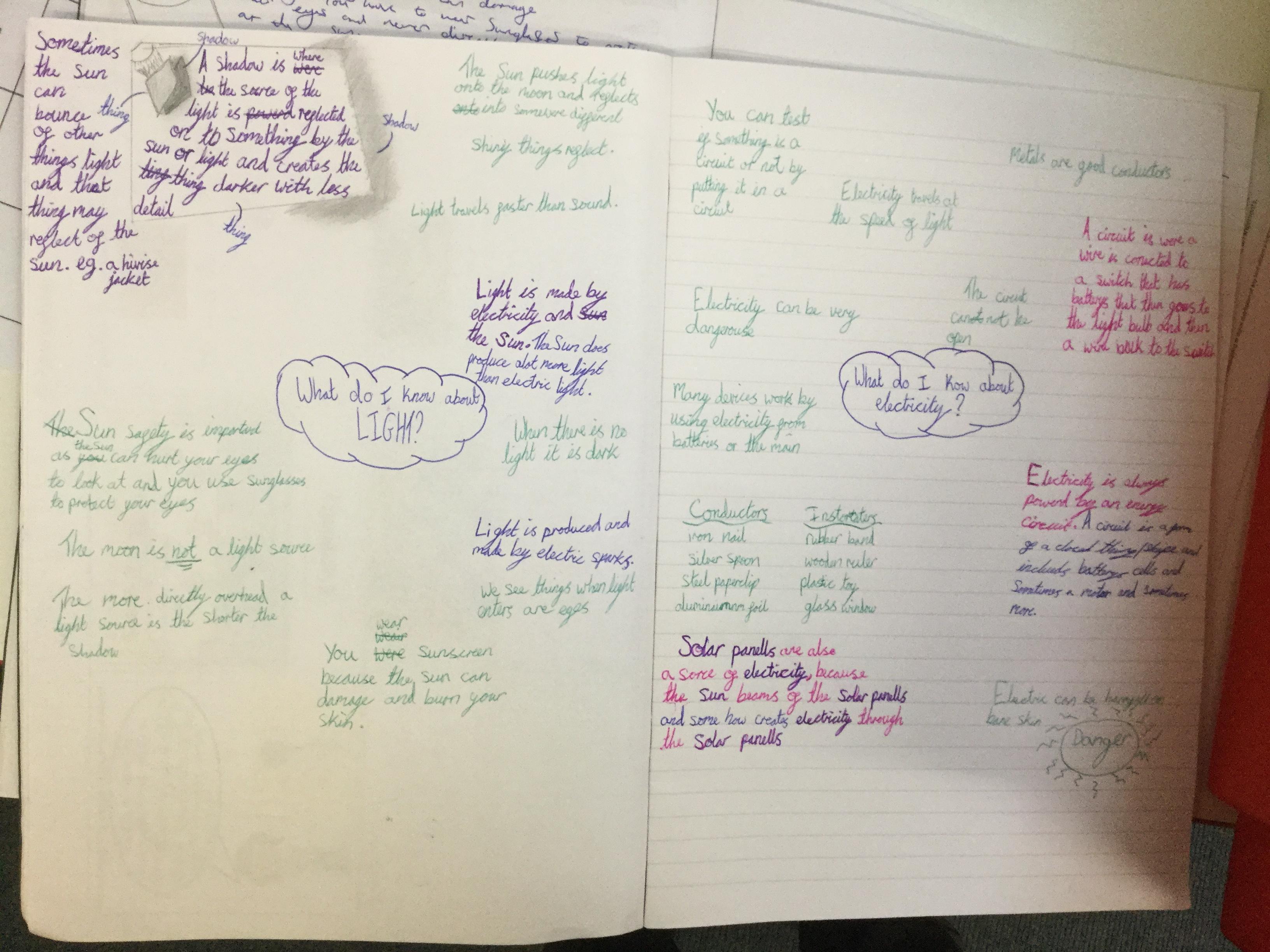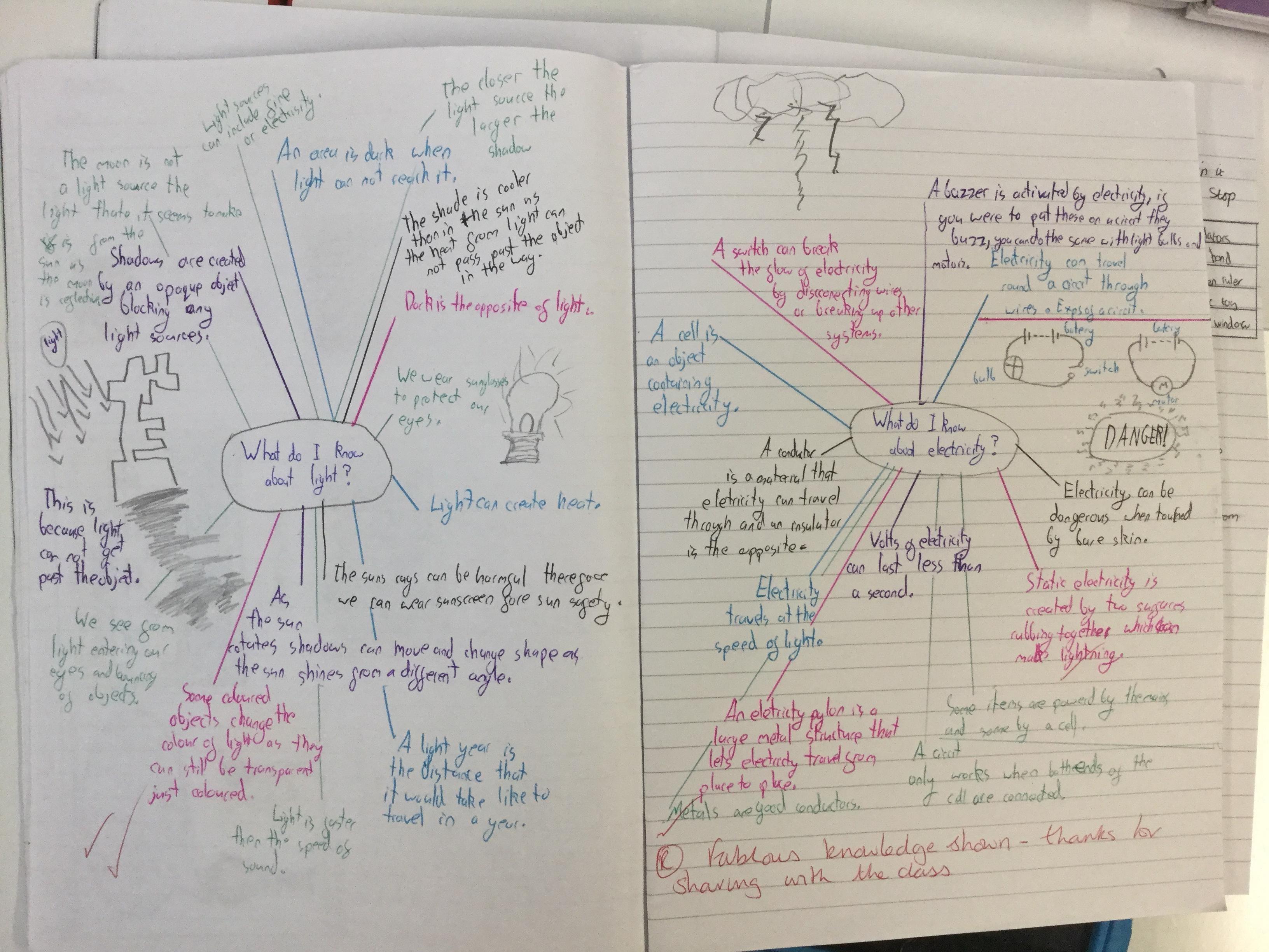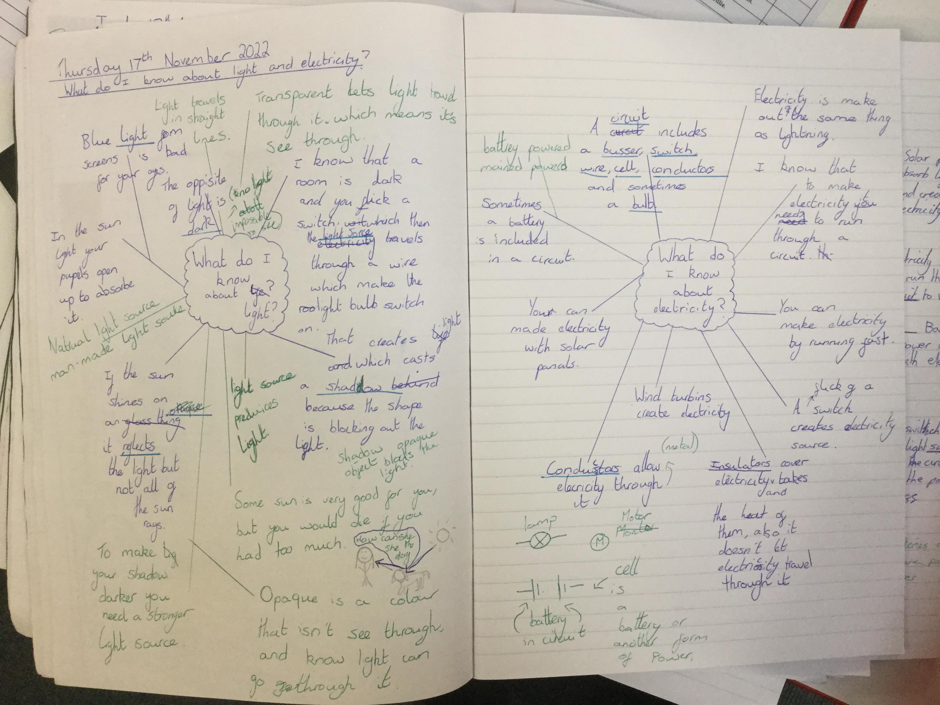 Thinking about our year 3 (light) and year 4 (electricity) we created mind maps of everything we could remember based upon some key vocabulary.